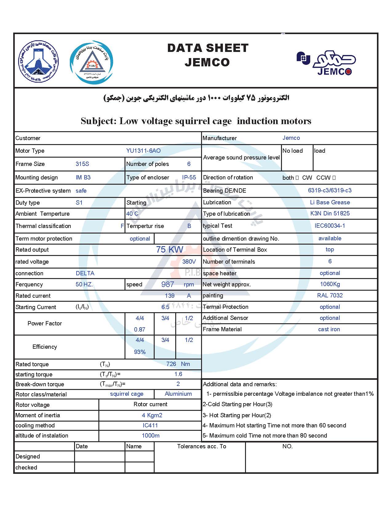 چاپ/دریافت فایل PDF| Power (KW) | 75 |