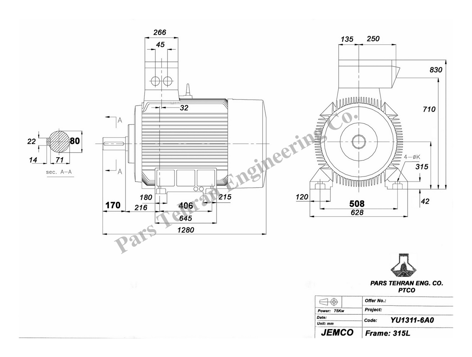 قیمت و کاتالوک تفکیکی شامل DataSheet و Drawing الکتروموتور جمکو سریYU فشارضعیف YU1311-6A0 مدل B3 پایهدار، قدرت 75(کیلووات) و سرعت 1000(دور در دقیقه). آخرین بروزرسانی: فروردین1402